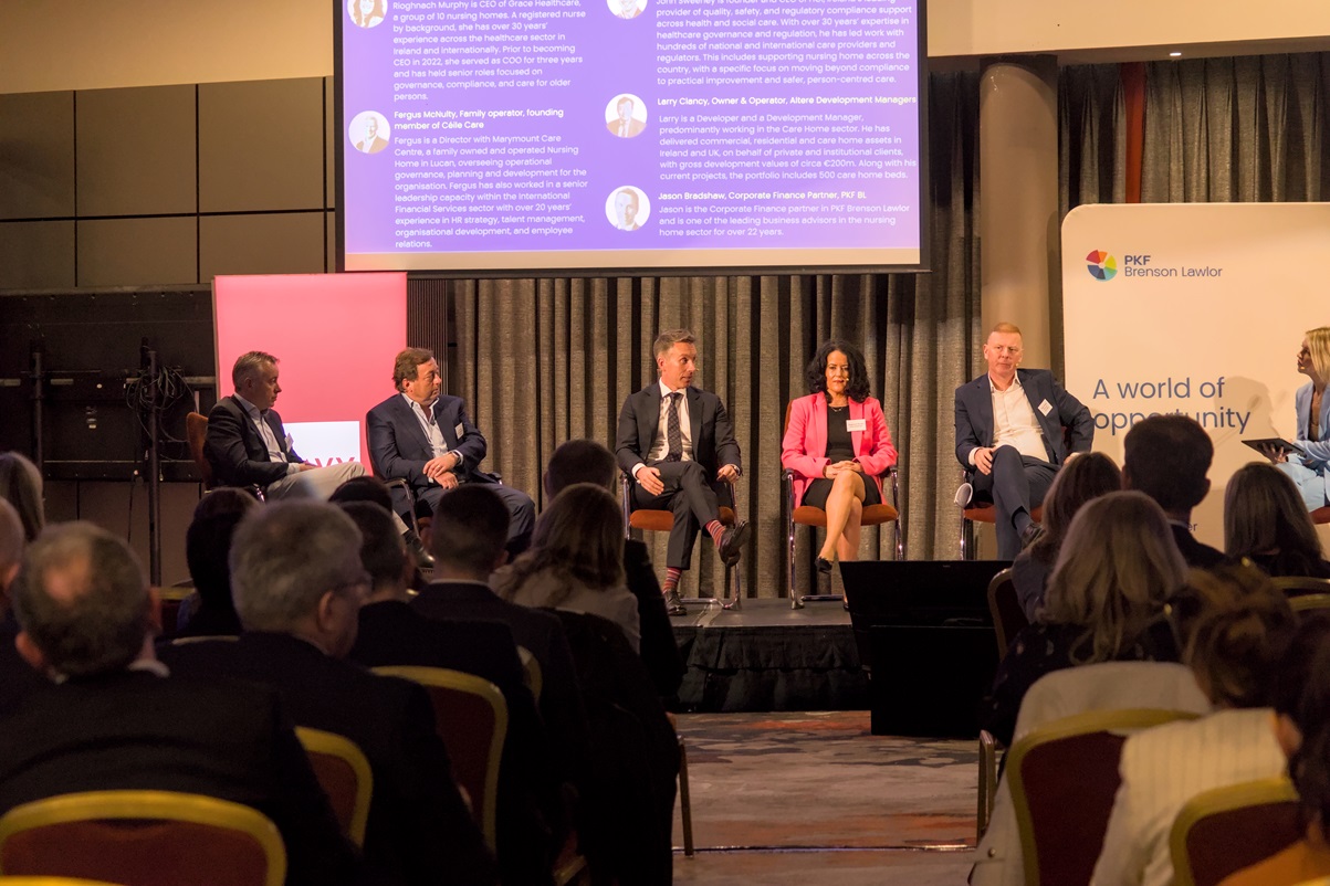 This panel included Fergus McNulty, owner of Marymount Care Centre and founding member of Céile Care; Rioghnach Murphy, CEO of Grace Healthcare Nursing Home Group; Larry Clancy, CEO of Altere Development Managers; John Sweeney, CEO of Healthcare Informed (HCI); and Jason Bradshaw, Corporate Finance Partner at PKF Brenson Lawlor.